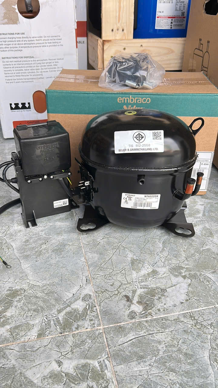Máy nén EMBRACO chính hãng 1hp model NT6222GK gas R404